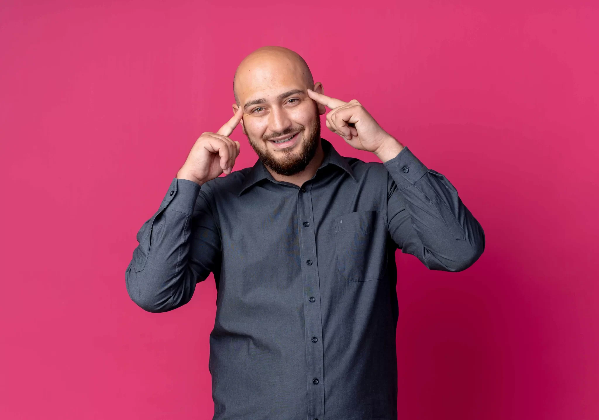 5863ce83-smiling-young-bald-call-center-man-putting-fingers-temples-isolated-...