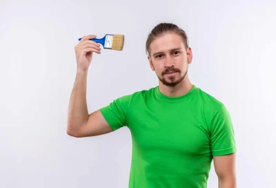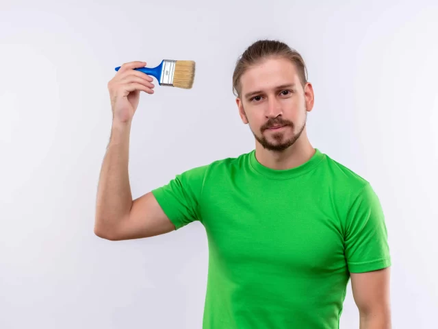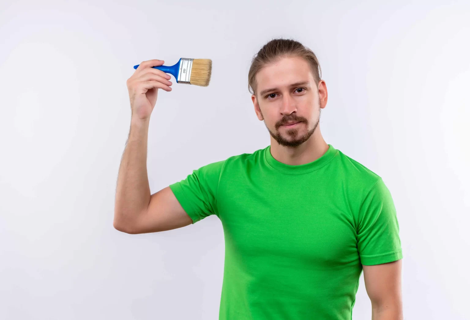 6af20c13-young-handsome-man-green-t-shirt-holding-paint-brush-looking-confide...