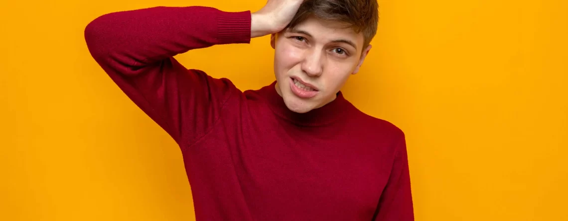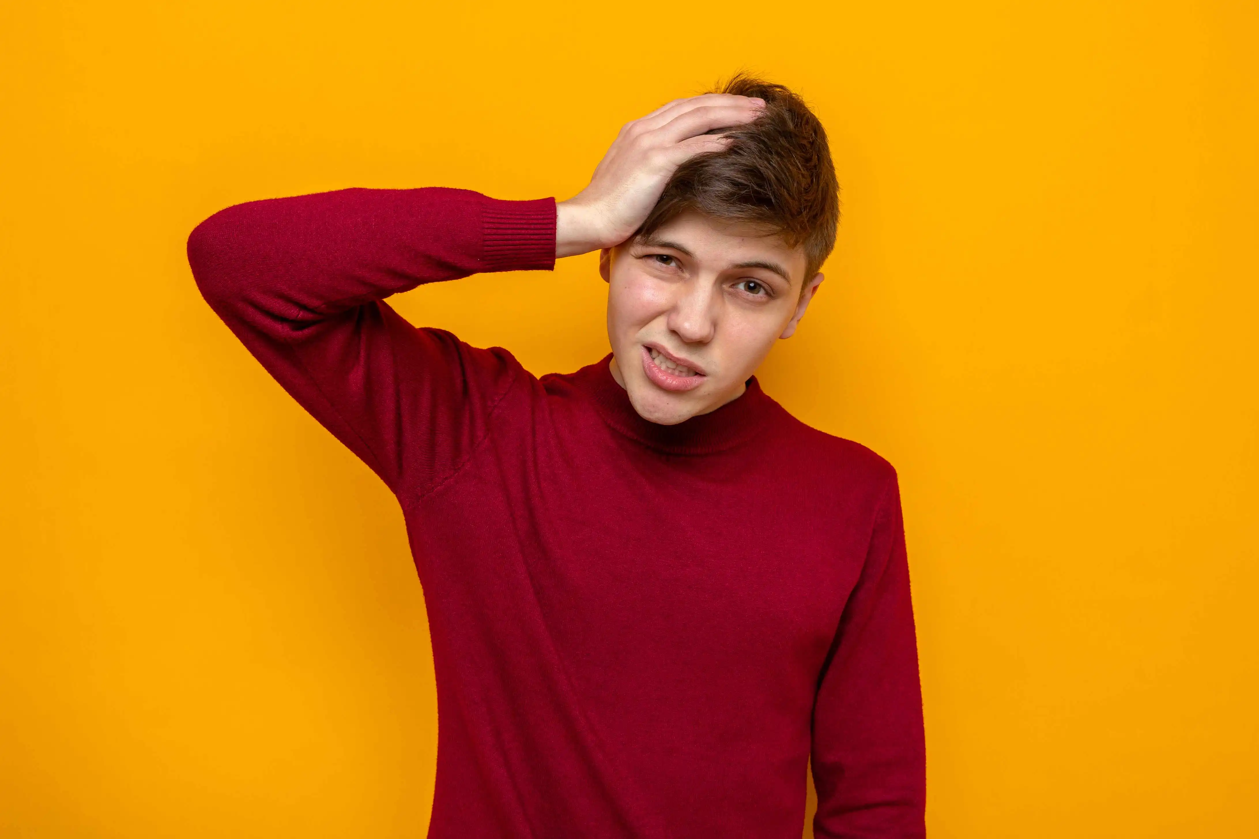 80f90d47-regretted-putting-hand-head-young-handsome-guy-wearing-red-sweater-_...